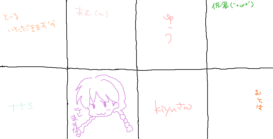 参加してくださった、kiyuさん、おとはさん、ねむ子さん、ttsさん、椛さん、夕夏さん、