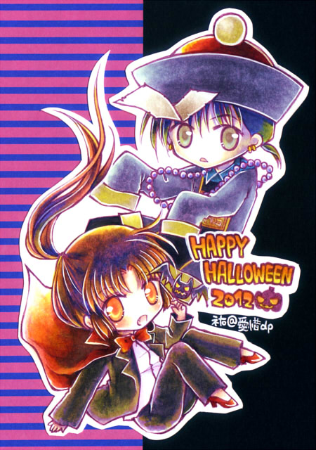 毎年魔女とか描いてしまいそうになるので、描いたことないものを描こう!と思い、 キョンシー弥勒さまと、ドラキュラ♀な珊瑚ちゃん。 この絵をハロウィンカードにして、こないだのインテで無料配布してました。 貰ってくださった方ありがとうございました(^^*) いつものごとくアナログ塗りなのですが、最近コピック使うとすぐに無水エタノールぼたぼたたらしちゃうんで、 ちょっと自重して普通にグラデ頑張りました。 着色済の人物をチョキチョキして、ボーダー柄の折り紙と一緒に黒画用紙に貼ってます(´▽`*) これ書くのに「キョンシー」で画像検索したりしたんですが、 実写のキョンシーが普通に怖くてガタガタしてたのはここだけの話(^p^;)笑 すごく楽しく描けました♪♪ 2012/10/30(Tue) 22:01:22