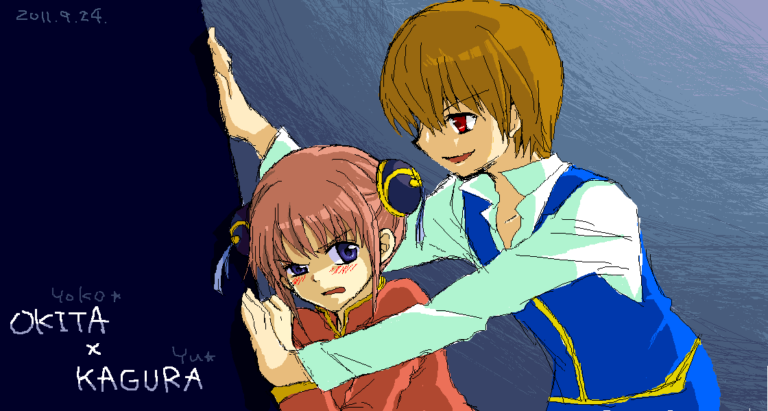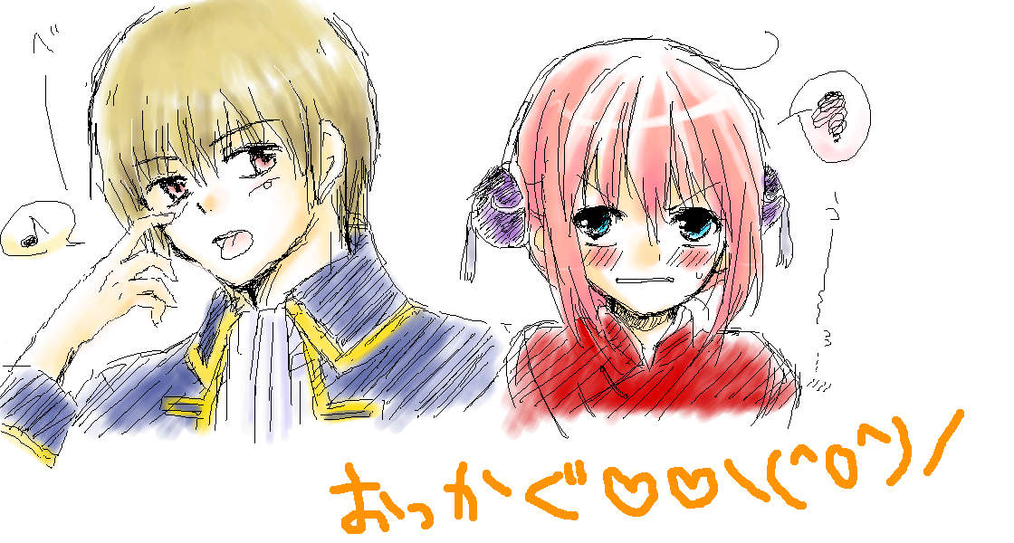 練習がてら描いた沖田の横に、よーこちゃんが可愛い神楽ちゃんを買いてくれましたvv