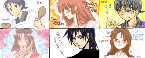 夫な弥勒さま、妻な珊瑚ちゃん、泣く弥勒さま珊瑚ちゃん、笑う弥勒さま珊瑚ちゃん、がそれぞれのお題です^^