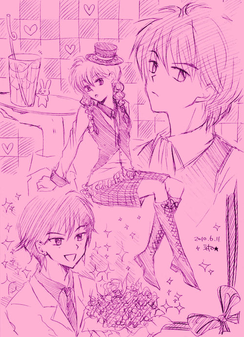 センスないのは元からなんです・・・!す、いません・・・(;_;) 最初のイメージは、「姫に至れり尽くせりな王子(?)2人」的なね・・・!(゚▽゚;) でもいつの間にか変わっていったのです。 ホントは、もともと「姫に~…」のイメージでカラーイラスト描こうと思ってて、 「桜ちゃんのフリフリ衣装でも考えよーかしらねー」と描きはじめたらこんなカンジに。。。 あれー????(^^^^^) でもなんか満足しちゃったんで、落書きだけどアップしときます。 ものすごーーーーく気が向いたらトレスして色塗るわー そういや、翼くん初描きです。む、ムズいなーーー; 徐々に練習しよーと思いまつ。 余談だけど、この絵今日の深夜1時ごろから描いてたんだよね。6.11.って書いてるけども。 寝るまでは今日だいっ!と、よくわからん理由で11日に。 あー なんかRINNE熱じわじわ来るーーー!! りんさくを中心として、このあふれ出る創作意欲はなんでしょうか・・・! こ、これはまさか恋(ry 犬夜叉イラストもいろいろネタ考えてあるんですけど、 いかんせん画力が追いつかず(´▽`;) とりあえず描く意欲はむんむんなので、今のうちにイロイロ描きためときます(^^) 2010/06/12(Sat) 21:00:03