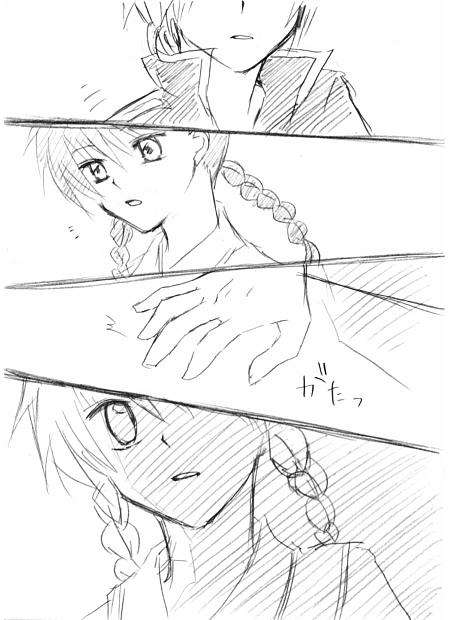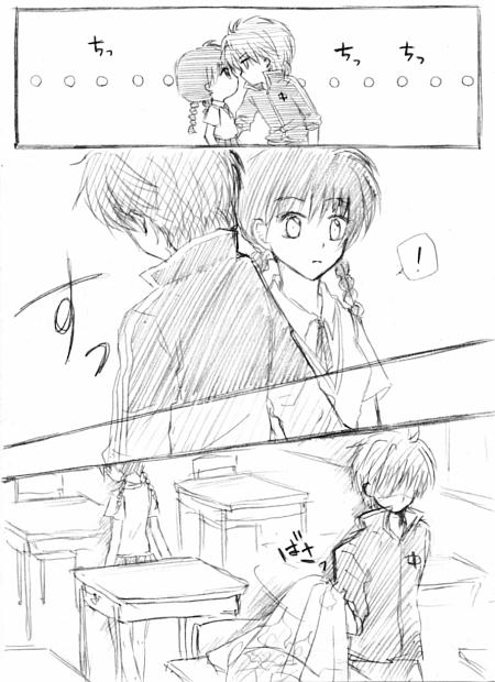 カプ絵っぽいものを描いてみました。 原作でこんなシーンが見れる日が来るように願いをかけつつ・・・。 背景?パース?ナニソレ美味しいの??(^p^) コミックス読んでたらどーしても妄想が止まらなくなって、勢いのまま描きました。 決して「ドキッ」とかいう効果音はつけてはいけません。 桜ちゃんは私の中で、どクールヒロインの称号が与えられているので(ぉ なので、りんねくんが迫ってきても真顔です。 りんねくんも、なんとなく本能のままに近づいてみたけど、別に何をするでもなく 3秒後我に返って「なにをしてるんだ自分は・・・・・」とかになればいい(^^^^^^^) 今月の4巻発売楽しみだなぁv 2010/06/04(Fri) 22:20:39